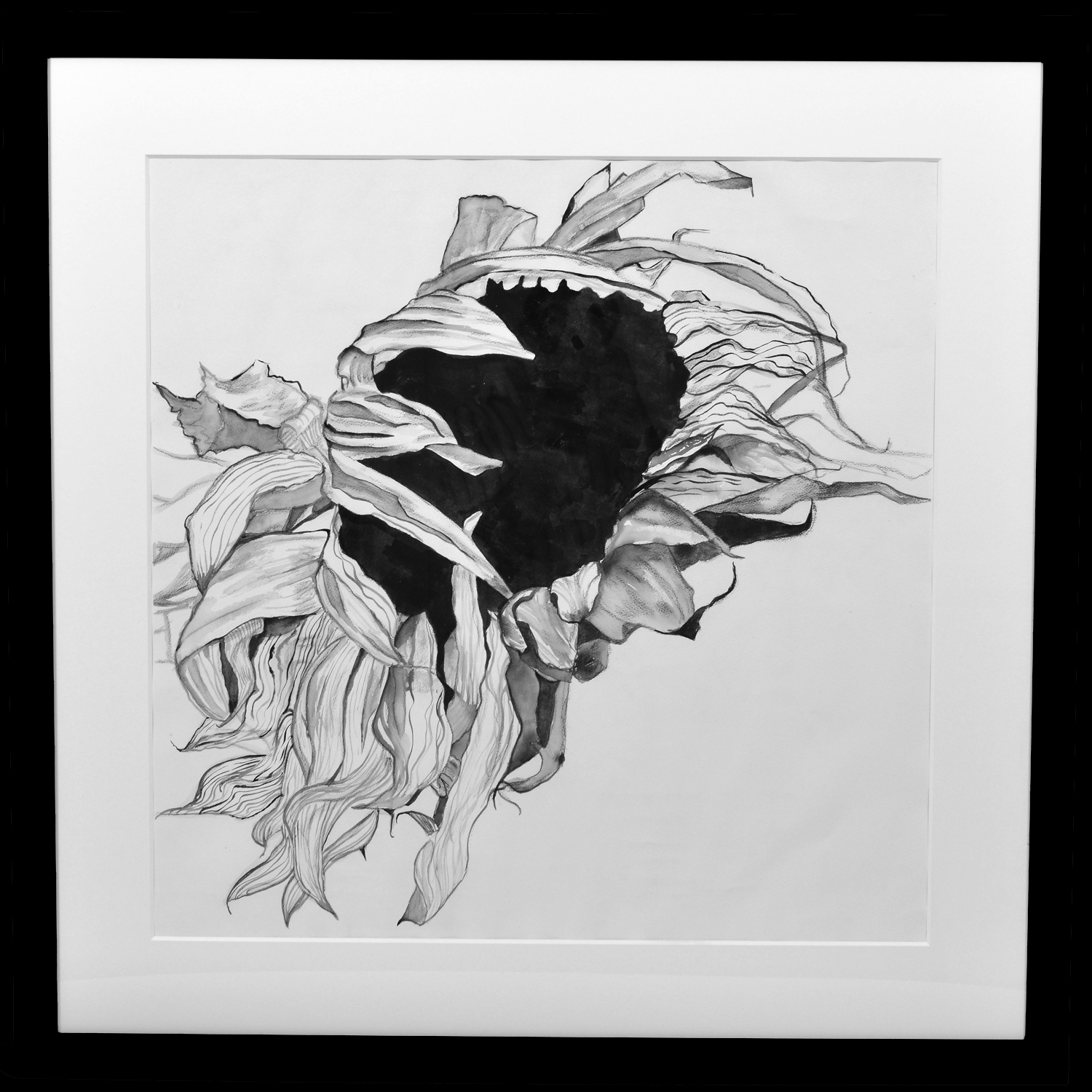 Transitions 6 Brown, C. (2017). Sunflower Portrait Series; Transitions #6 of 7, Chinese ink on Arches watercolor paper, 36” x 36”